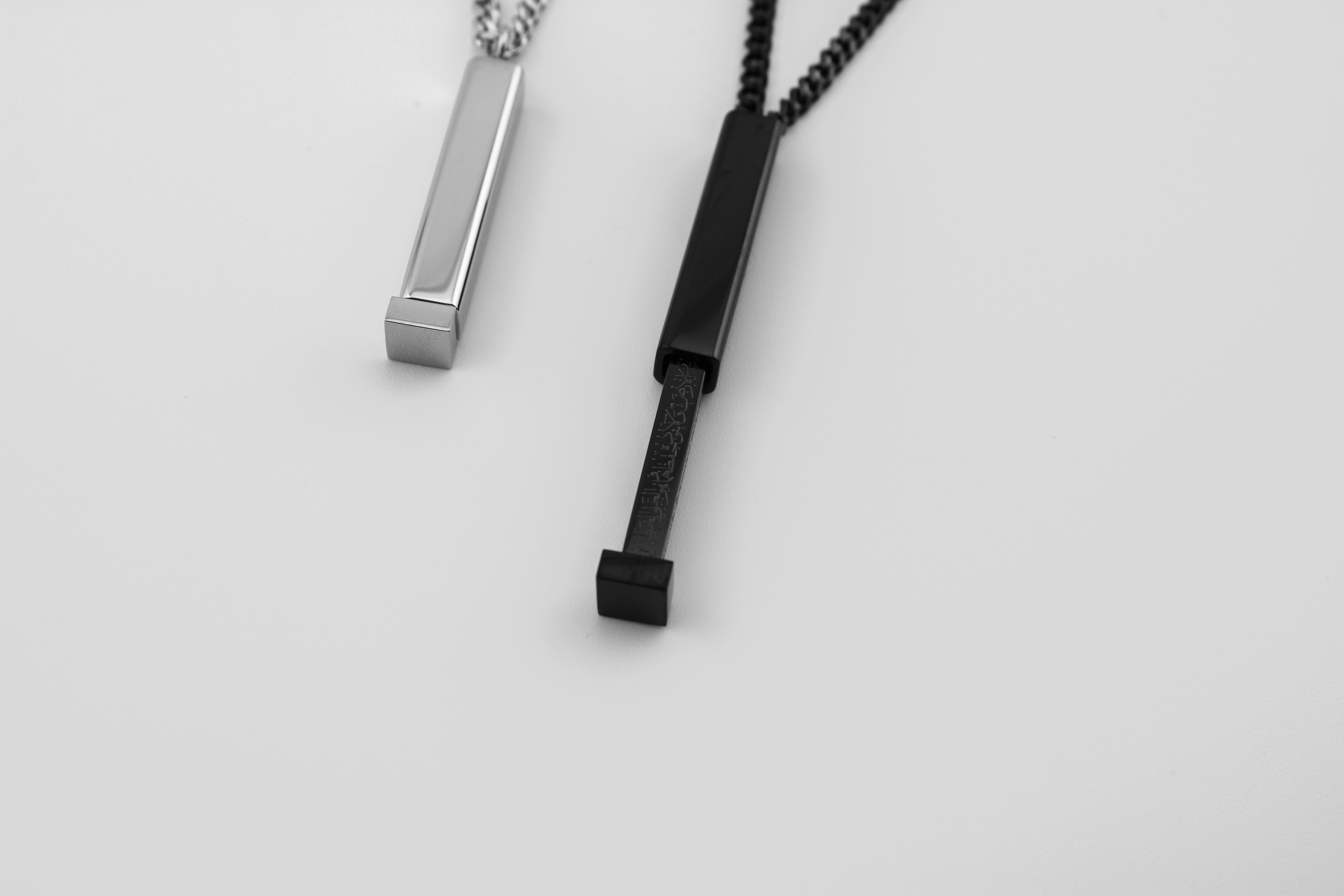 This men’s necklace features a bold bar pendant that discreetly encloses Ayat al Kursi, offering a sense of protection, grounding, and spiritual strength. Designed with clean lines and a solid presence, it reflects faith in a refined, understated way.