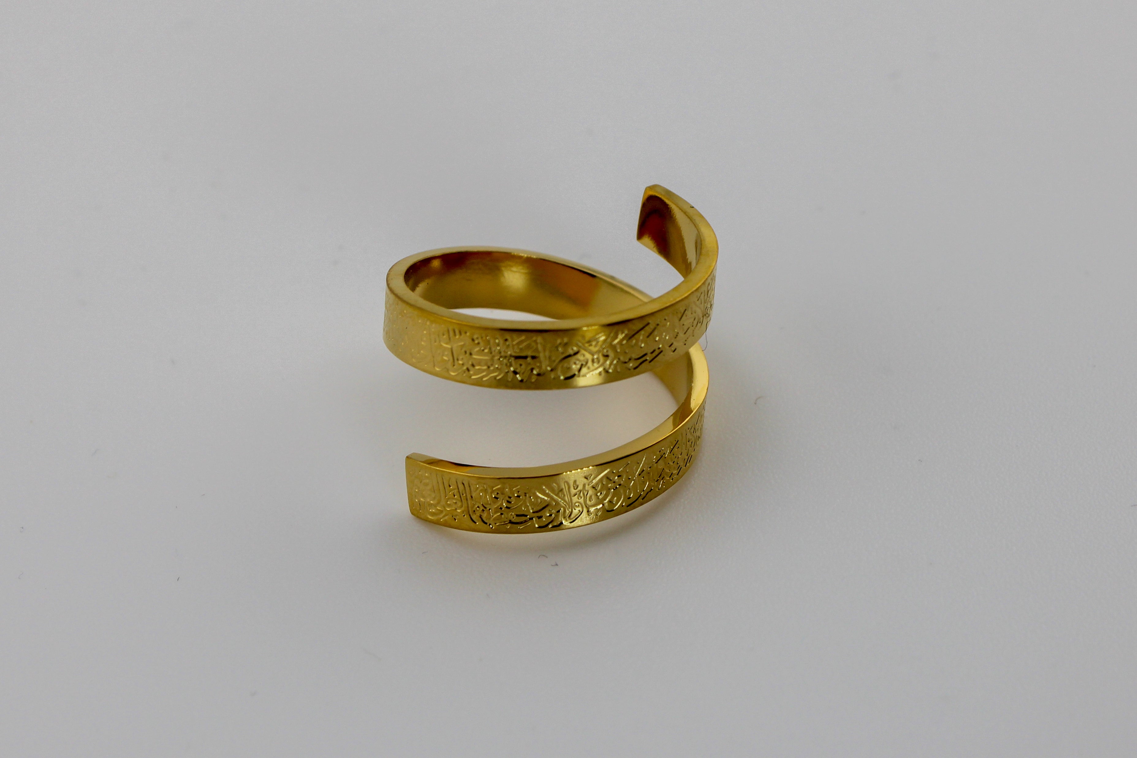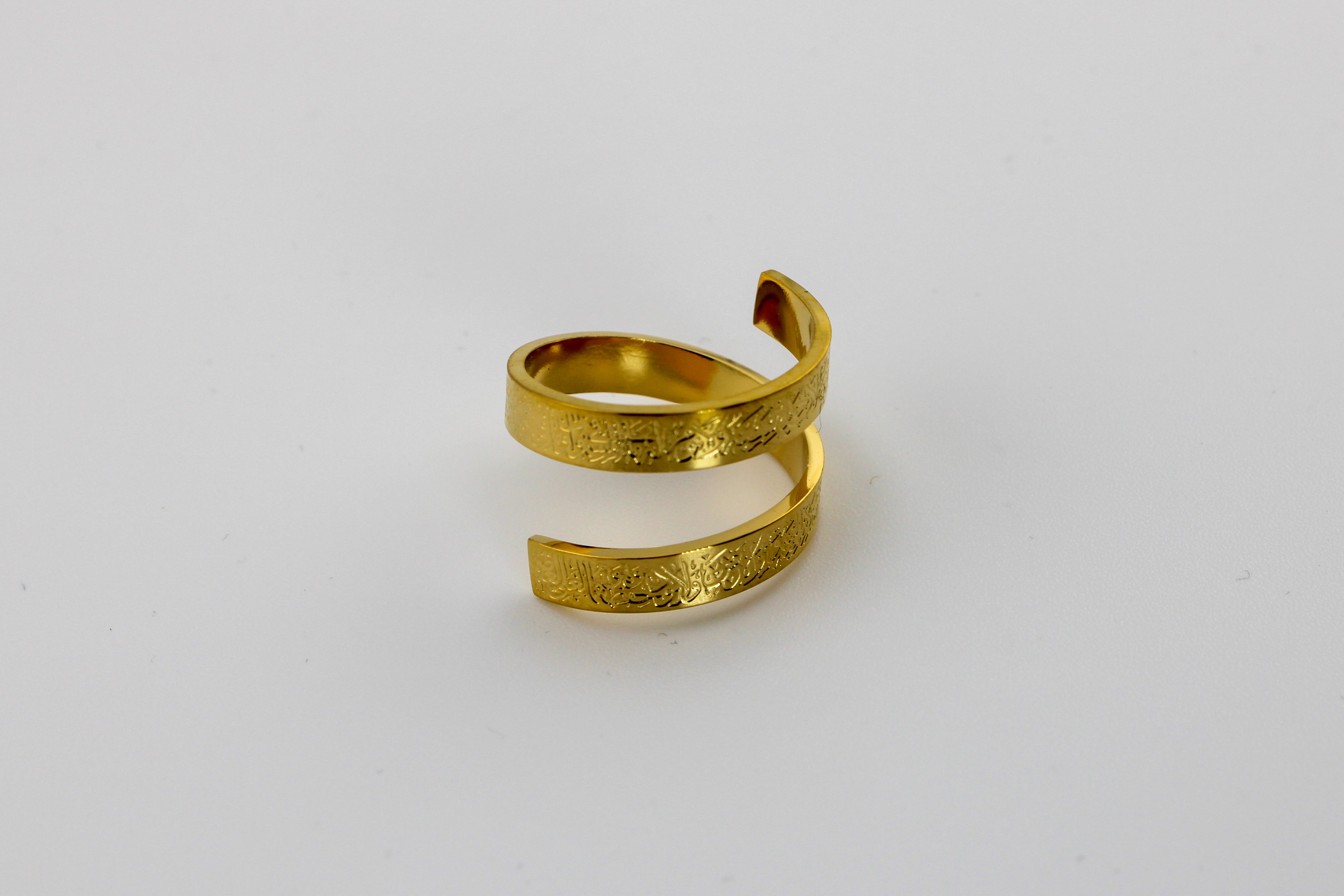 Ayat Al Kursi · Throne: An elevated essential with heritage‑inspired detail—timeless, minimal, and versatile. Crafted from high‑quality stainless steel with PVD gold plating. Hypoallergenic, water and sweat resistant, and scratch resistant for daily wear. Lightweight yet durable, it adds a polished finish to any look. Backed by our lifetime warranty.
