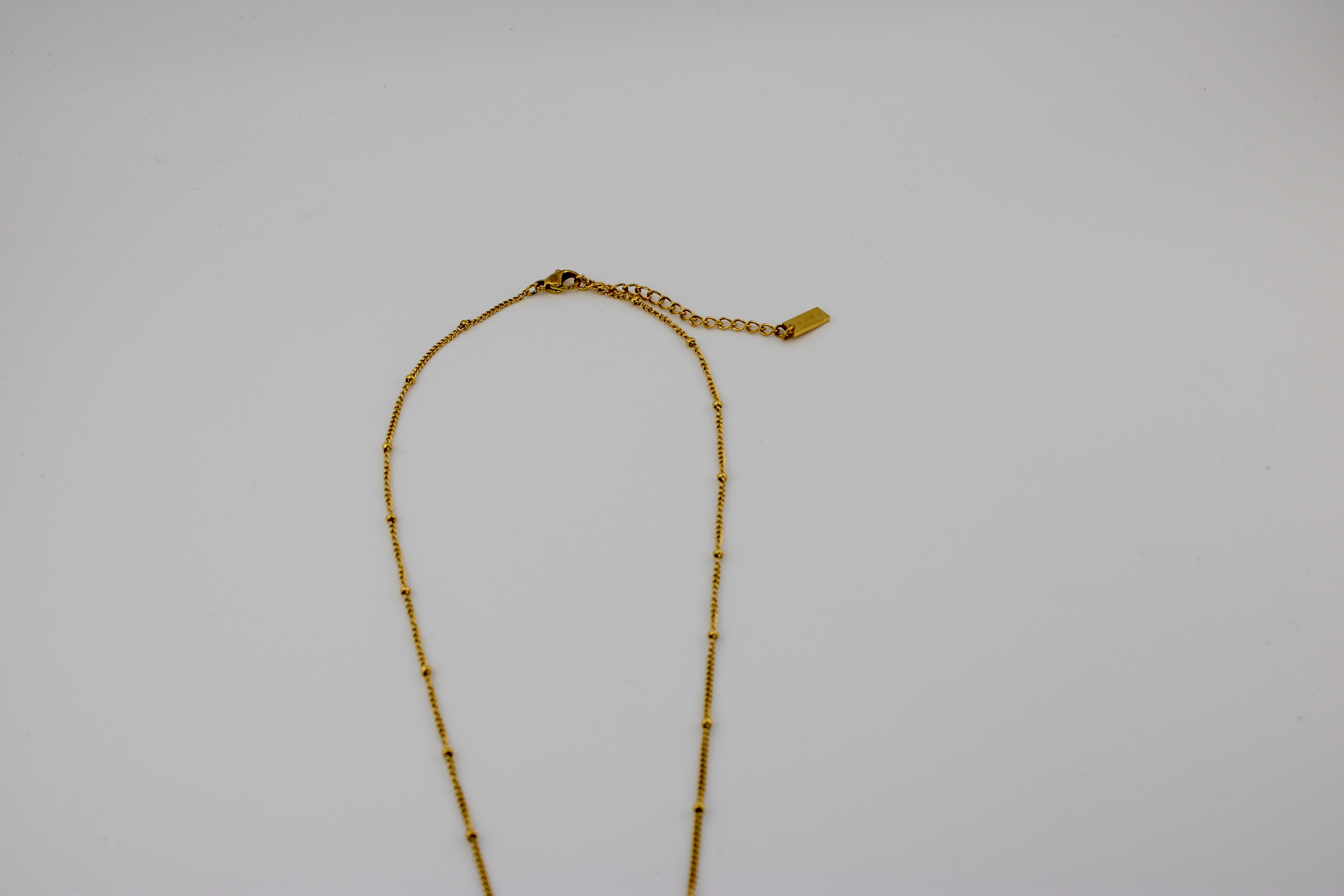 Crafted from stainless steel with 18k gold plating, this necklace is made to last and designed to layer beautifully or stand on its own.