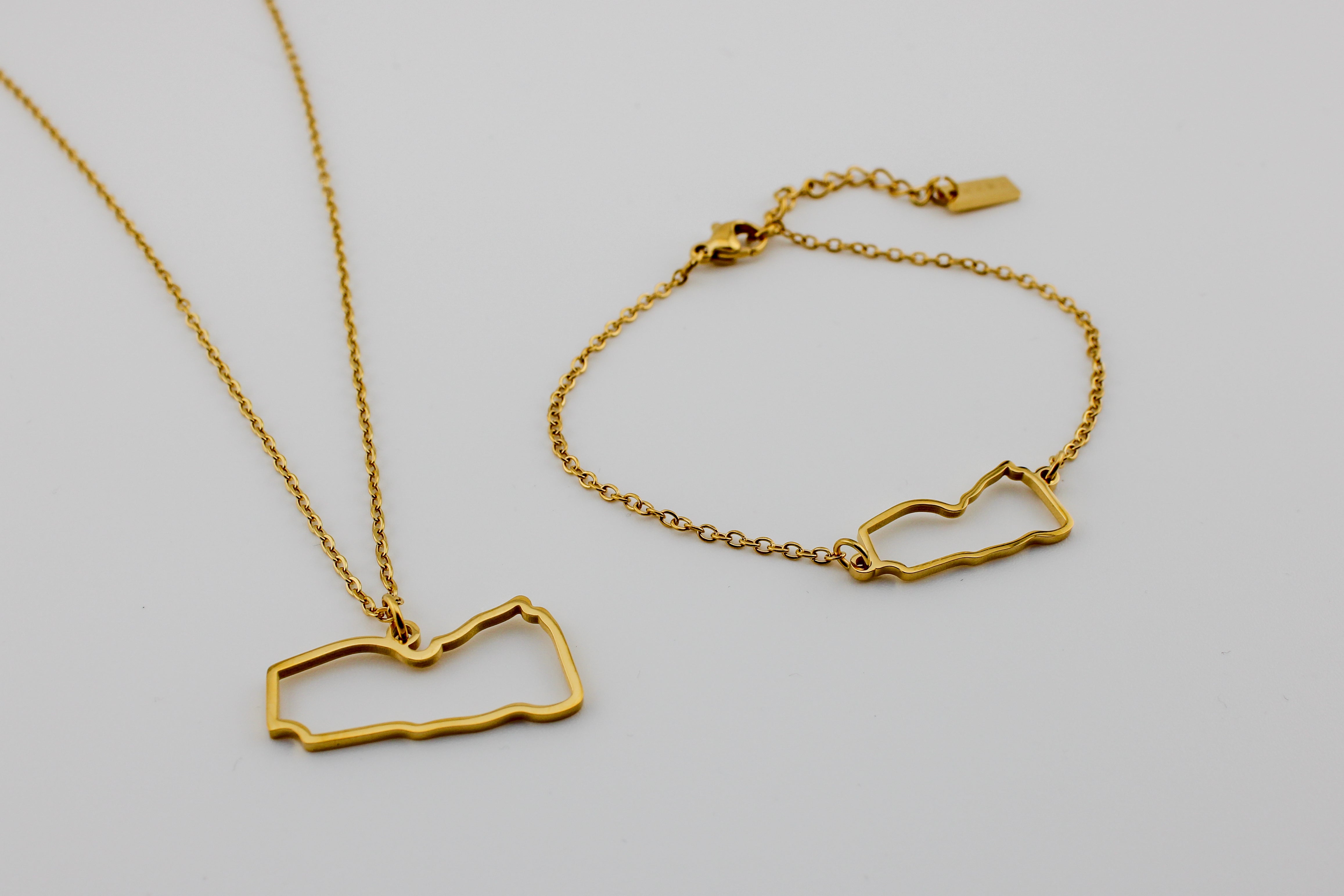 Celebrate your heritage with the Yemen Map Gift Set, featuring a beautifully crafted necklace and bracelet. Each piece represents roots, resilience, and honor, making it a meaningful gift for loved ones. Show them you care and help them carry a piece of their story wherever they go.